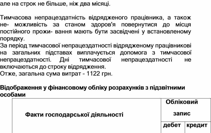 про службові відря- дження, у разі тимчасової непрацездатності відрядженого працівника