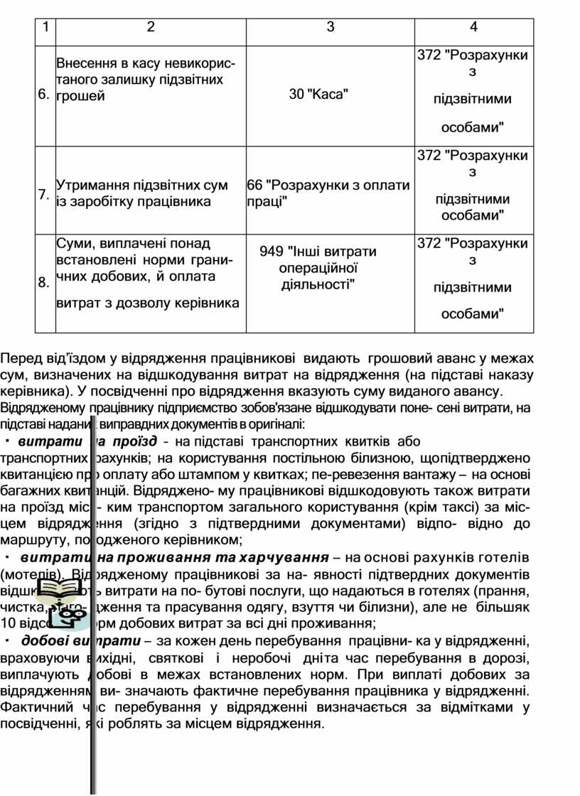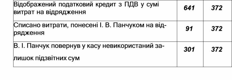 372 "Розрахунки з підзвітними особами" |