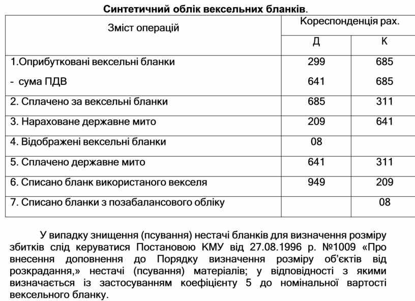 Синтетичний облік вексельних бланків.