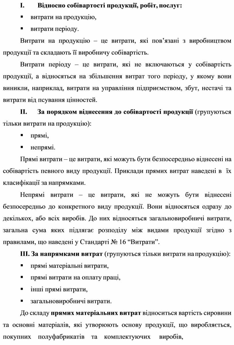 Непрямі витрати – це витрати, які не можуть бути віднесені безпосередньо до конкретного виду продукції. Вони відносяться одразу до декількох, або всіх виробів. До них відносяться загальновиробничі витрати, загальна сума яких підлягає розподілу між видами продукції згідно з правилами, що наведені у Стандарті № 16 “Витрати”.