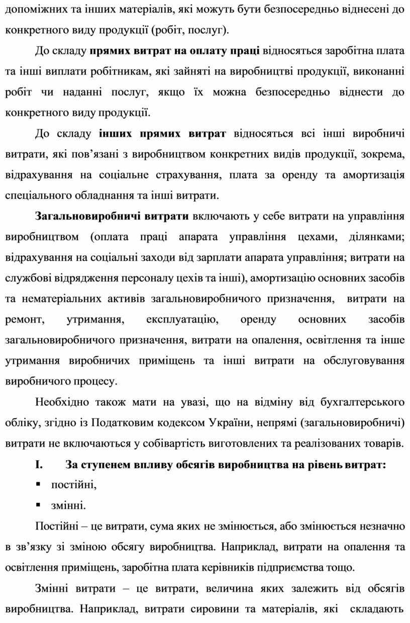 Необхідно також мати на увазі, що на відміну від бухгалтерського обліку, згідно із Податковим кодексом України, непрямі (загальновиробничі) витрати не включаються у собівартість виготовлених та реалізованих товарів.