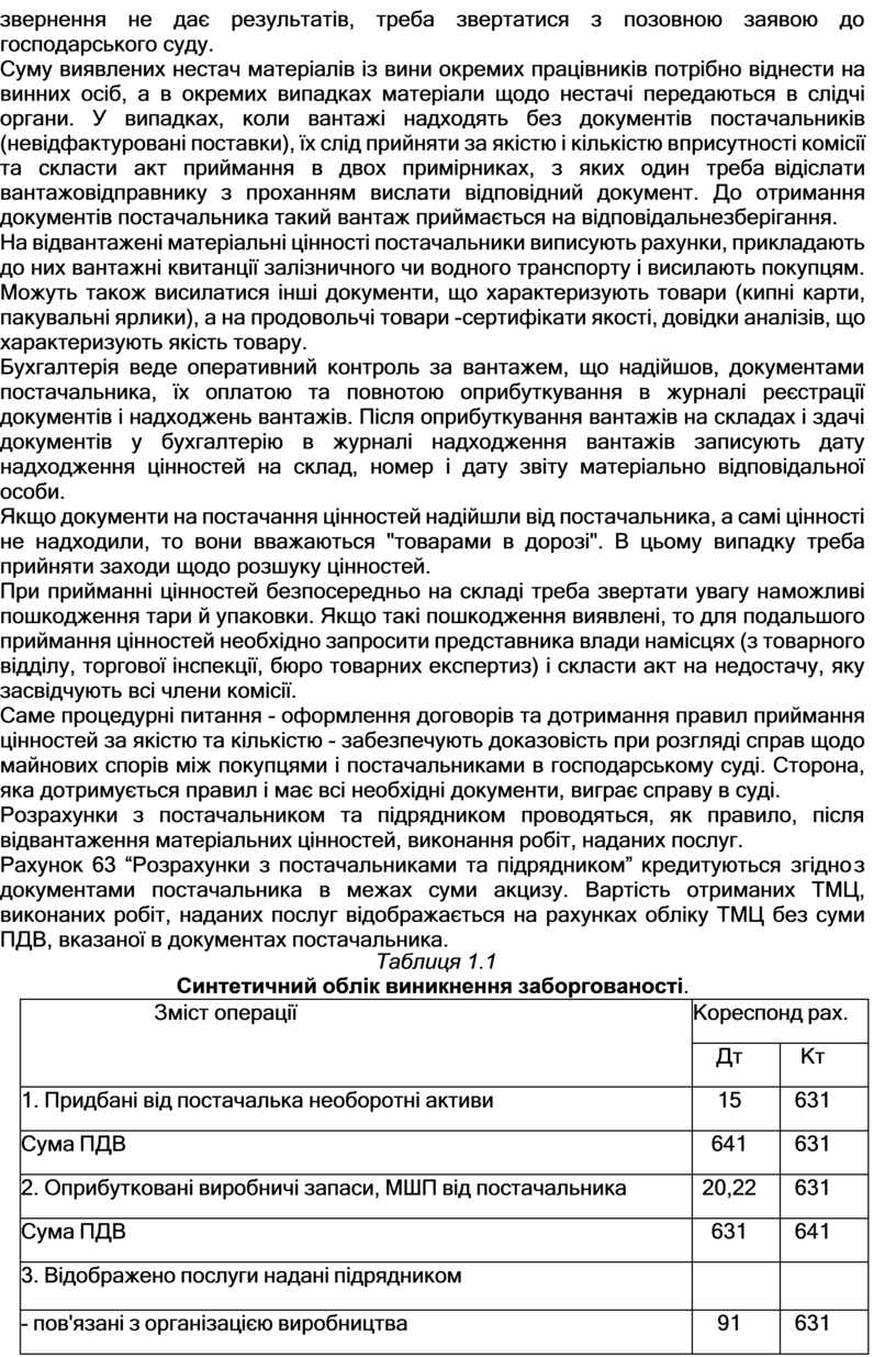 Рахунок 63 “Розрахунки з постачальниками та підрядником” кредитуються згідно з документами постачальника в межах суми акцизу. Вартість отриманих ТМЦ, виконаних робіт, наданих послуг відображається на рахунках обліку ТМЦ без суми ПДВ, вказаної в документах постачальника.