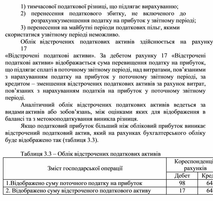 Таблиця 3.3 – Облік відстрочених податкових активів