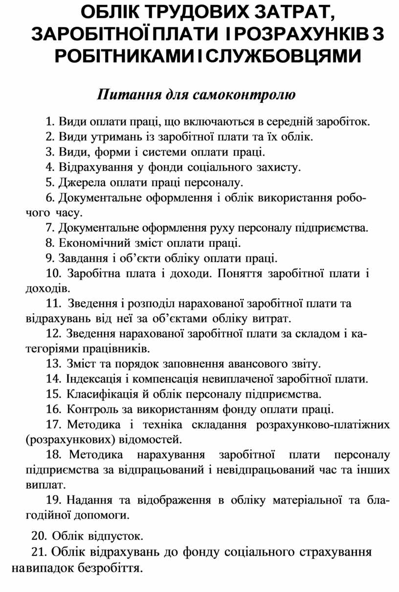 ОБЛІК ТРУДОВИХ ЗАТРАТ, ЗАРОБІТНОЇ ПЛАТИ І РОЗРАХУНКІВ З РОБІТНИКАМИ І СЛУЖБОВЦЯМИ