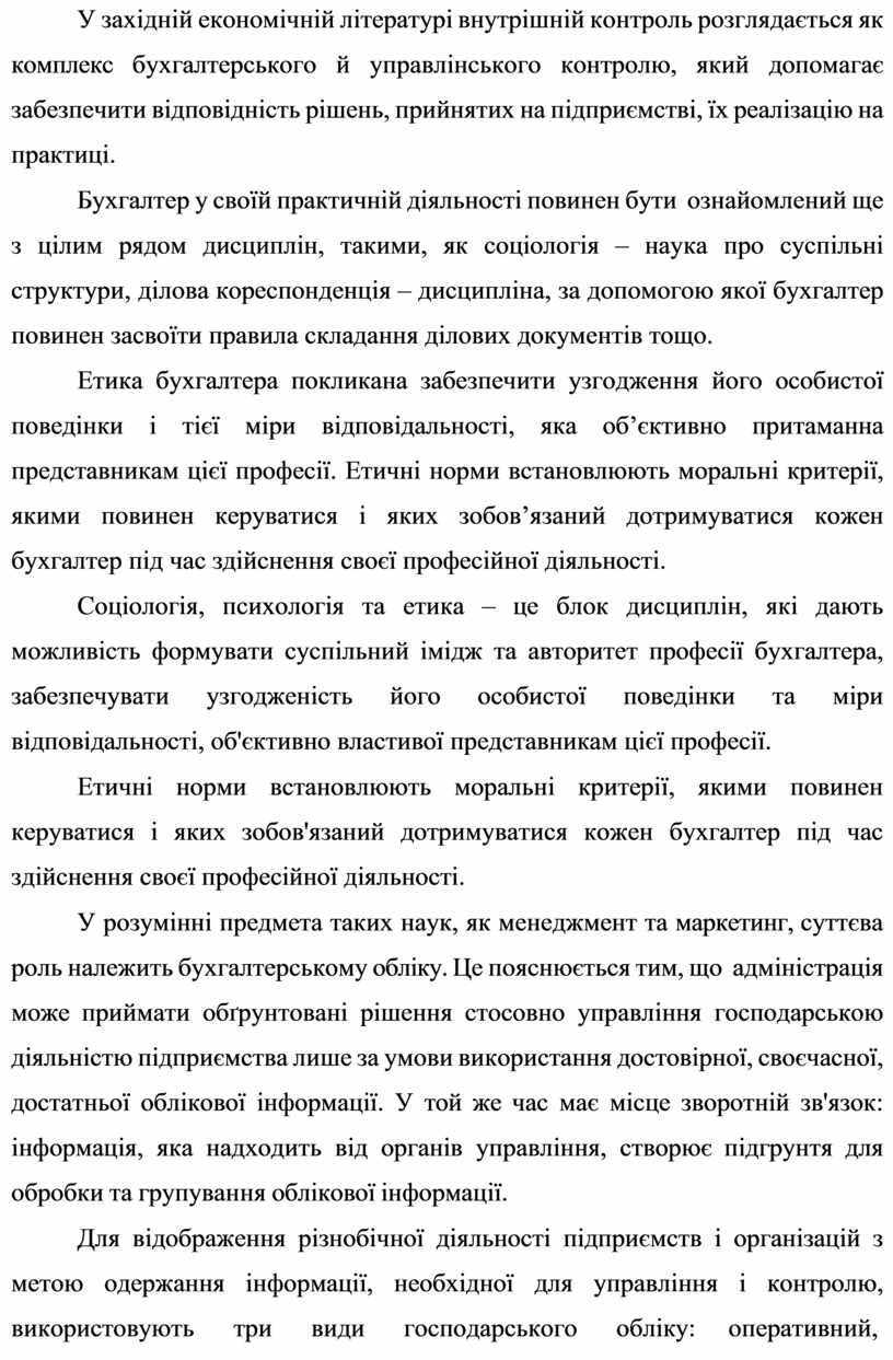 У західній економічній літературі внутрішній контроль розглядається як комплекс бухгалтерського й управлінського контролю, який допомагає забезпечити відповідність рішень, прийнятих на підприємстві, їх реалізацію на практиці.