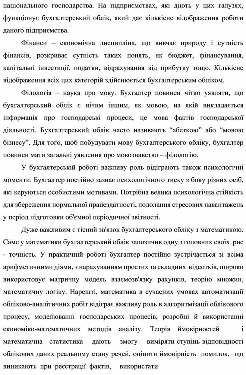 Бухгалтерський облік як наука і практична діяльність тісно пов'язаний з цілою сукупністю фундаментальних і прикладних дисциплін.