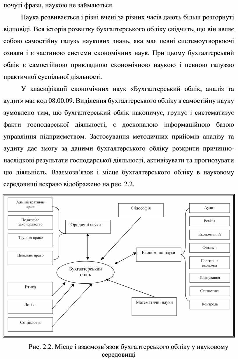 Рис. 2.2. Місце і взаємозв’язок бухгалтерського обліку у науковому
