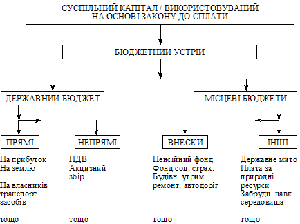 Що частина суспільного капіталу, тимчасово лишається в розпорядженні підприємства, це відбувається внаслідок (на підставі) законодавчого врегульованого розподілу та перерозподілу національного доходу. Йдеться про кошти, призначені для сплати таких зобов’язань: перед бюджетом щодо податкових внесків, перед страховими компаніями зі страхування працюючих, перед пенсійним та іншими (інноваційним, валютним тощо) фондами. Ці кошти залишаються тимчасово. Поняття «тимчасово» гнучке. Адже іноді термін виплати за зобов’язаннями настає за кілька днів (наприклад, внесення до бюджету податку з доходу громадян і т. ін.), іноді — місяців, а в окремих випадках і років (відстрочені платежі по внесках до бюджету).