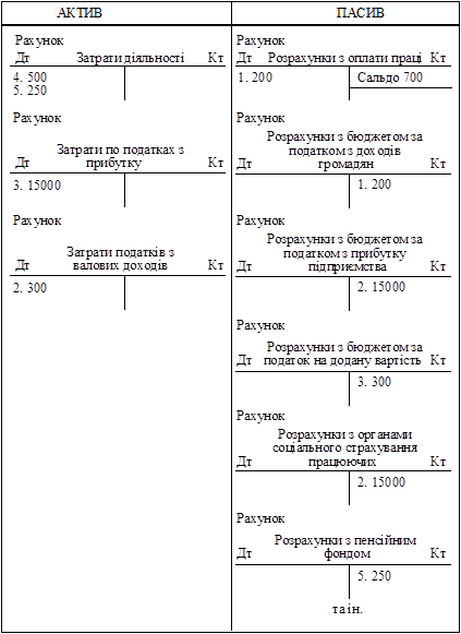 Примітка. Затрати податків на валові доходи за національними стандартами відображаються не як затрати, а як зменшення доходу в дебеті рахунка «Доходи».