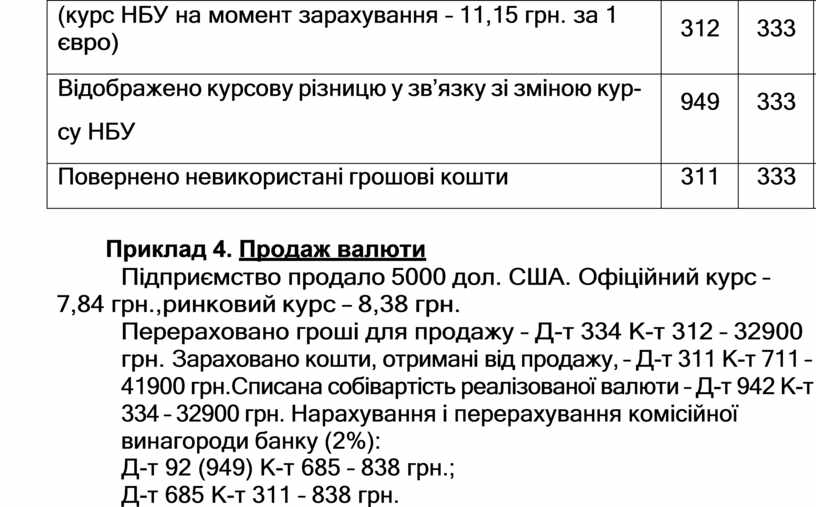 На дебет рахунка 942 з кредиту рахунка 334 списують також суму, яку отримало підприємство від продажу іноземної валюти на валютній біржі.