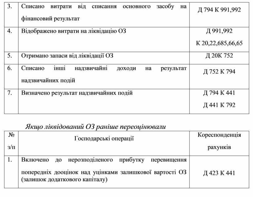 Якщо ОЗ ліквідуються через аварію, або стихійне лихо до акту на списання додають акт про надзвичайну подію.