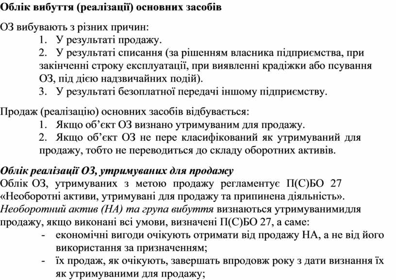 Якщо не виконано хоча б однієї умови п.1 р.ІІ П(С)БО 27, продаж ОЗ о обліковують без перекласифікації як утримувані для продажу. Найчастіше не виконується критерій «висока ймовірність продажу». У сучасних умовах найпопулярніший спонтанний (прямий) продаж ОЗ.