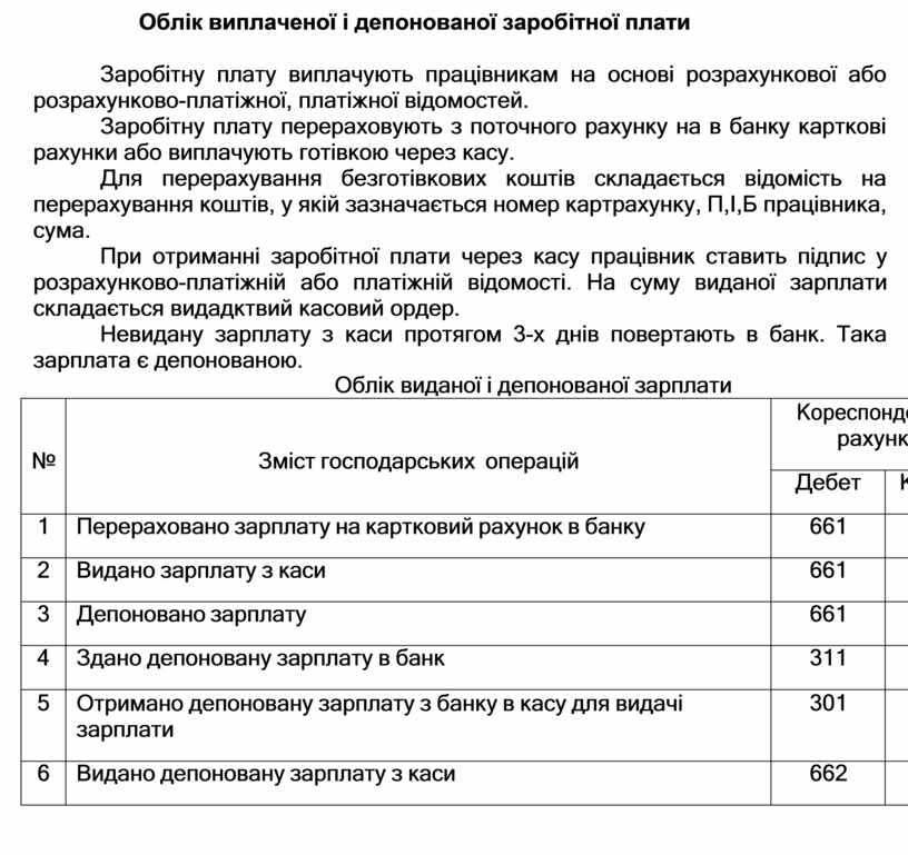 Заробітну плату перераховують з поточного рахунку на в банку карткові рахунки або виплачують готівкою через касу.