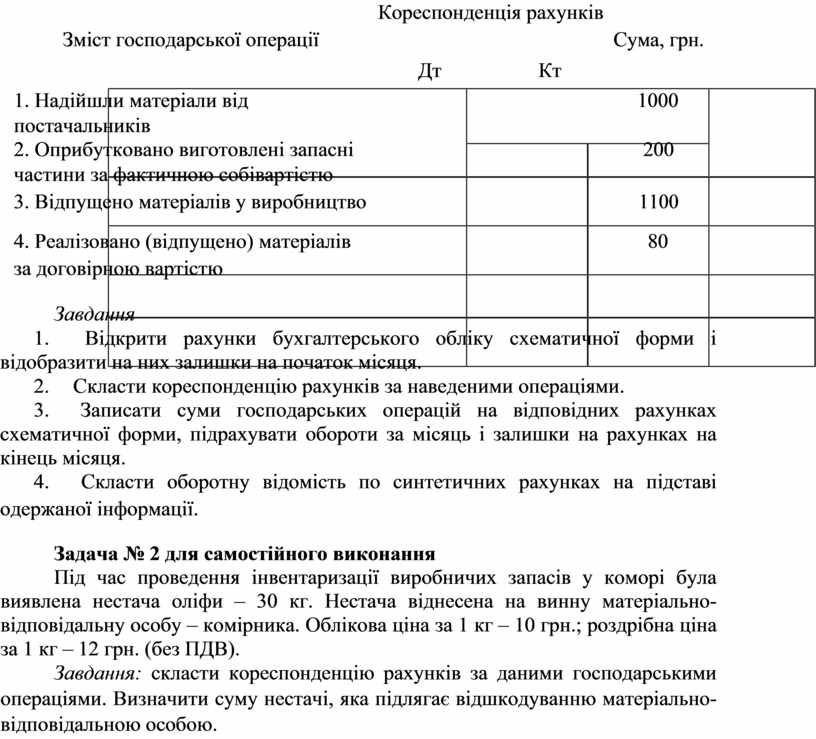 2. Скласти кореспонденцію рахунків за наведеними операціями.