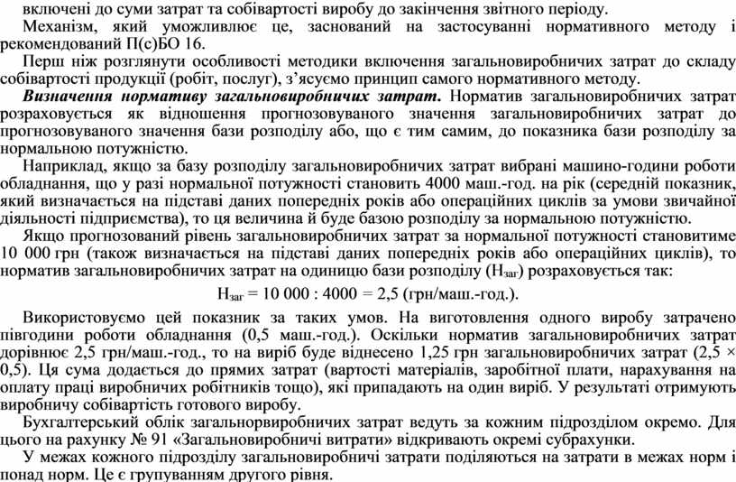Перш ніж розглянути особливості методики включення загальновиробничих затрат до складу собівартості продукції (робіт, послуг), з’ясуємо принцип самого нормативного методу.