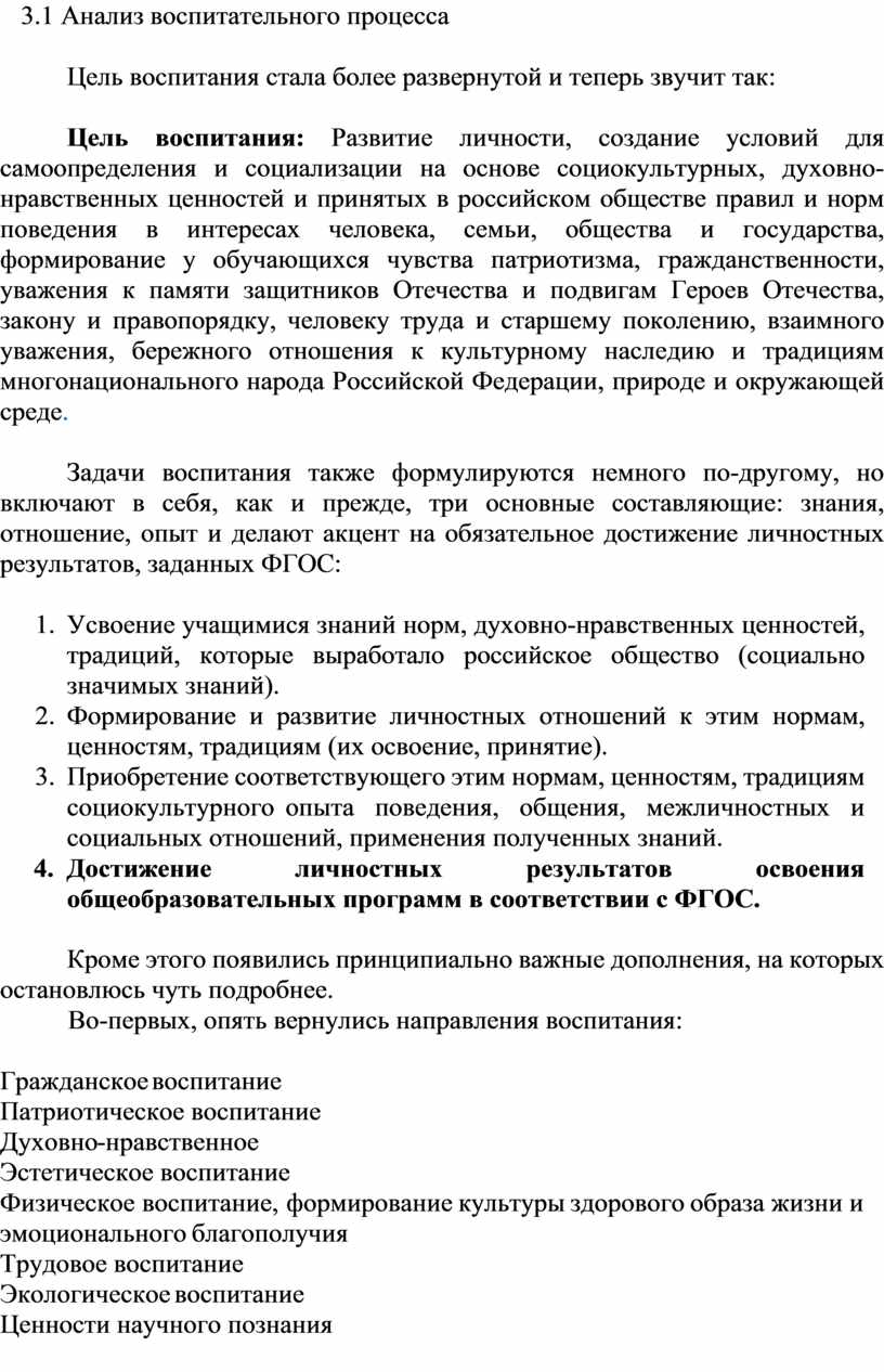 3.5 Анализ воспитательного процесса