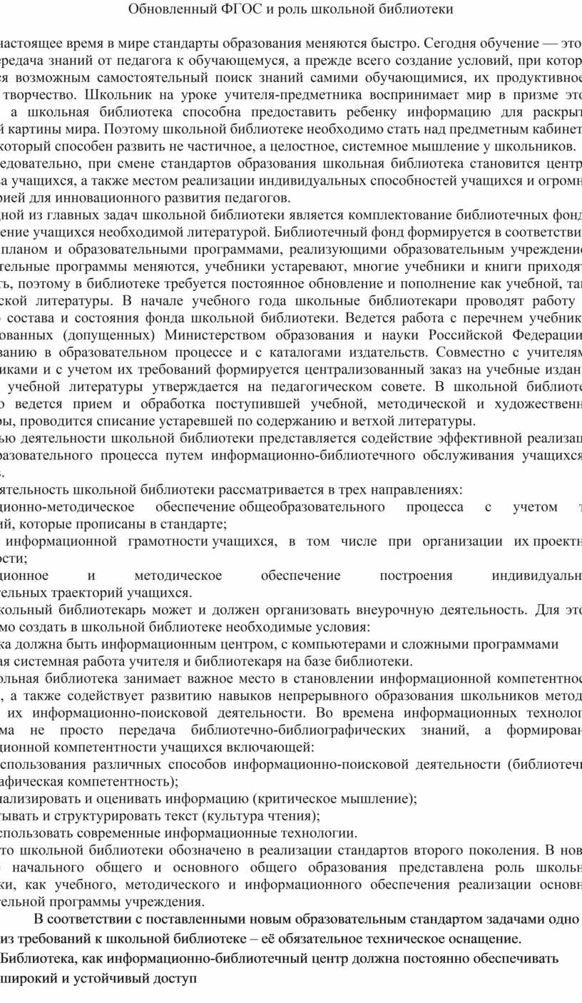 Обновленный ФГОС и роль школьной библиотеки