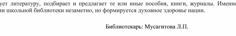 Библиотекарь: Мусагитова Л.П.