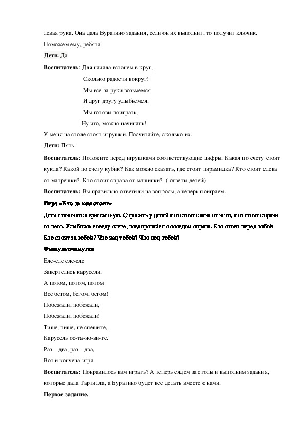 Буратино ты теперь знаешь, где лево и где право? Ребята выполнили все задания, и ты