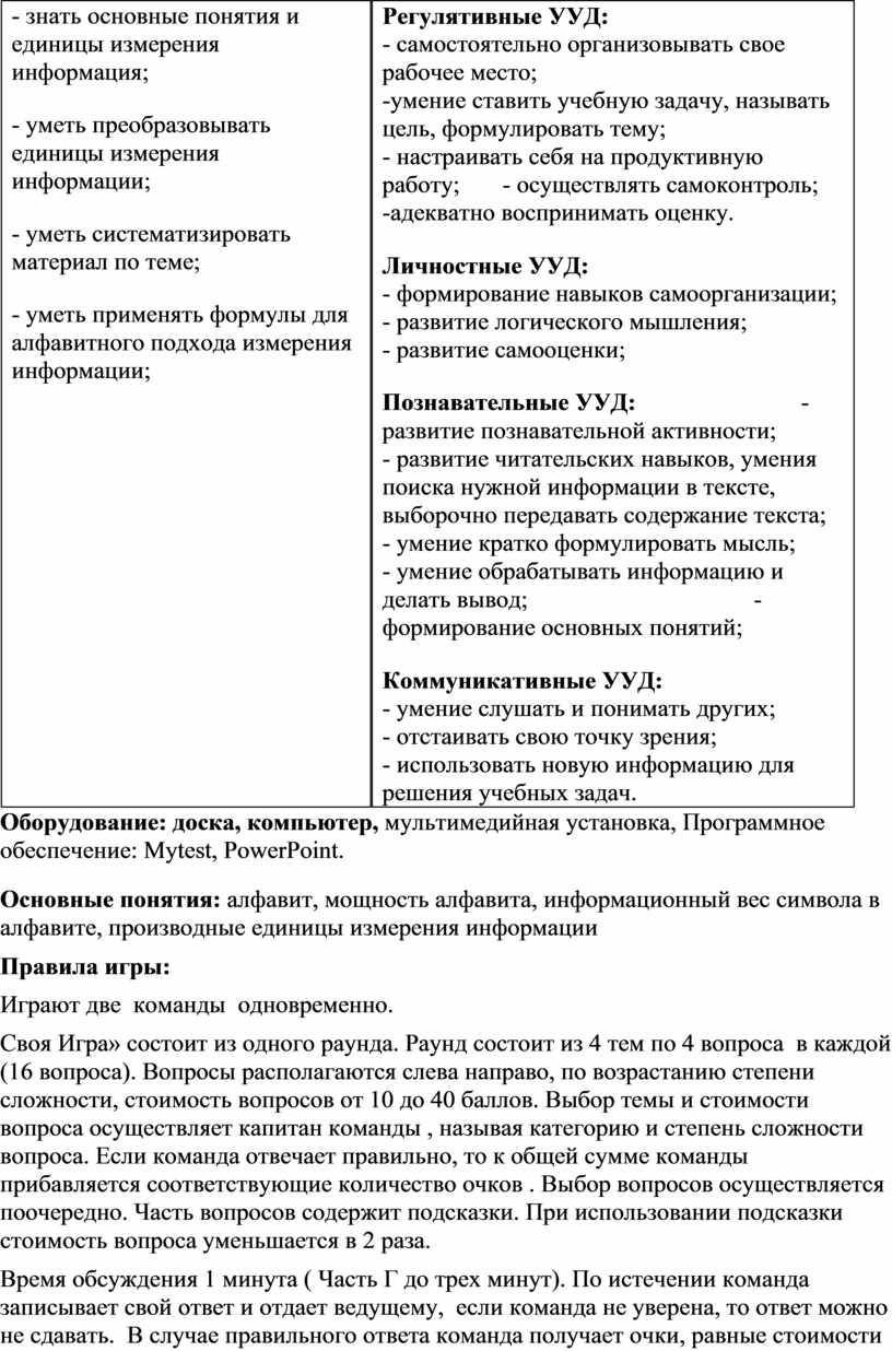 - знать основные понятия и единицы измерения информация; - уметь преобразовывать единицы измерения информации; - уметь систематизировать материал по теме; - уметь применять формулы для алфавитного подхода измерения информации;