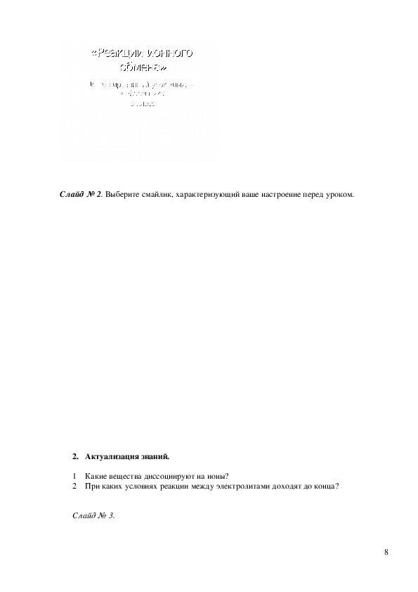 7Слайд № 2. Выберите смайлик, характеризующий ваше настроение перед уроком.