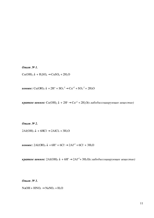 опыт № 1 «Взаимодействие гидроксида меди Cu(OH)2 c серной кислотой H2SO4»;