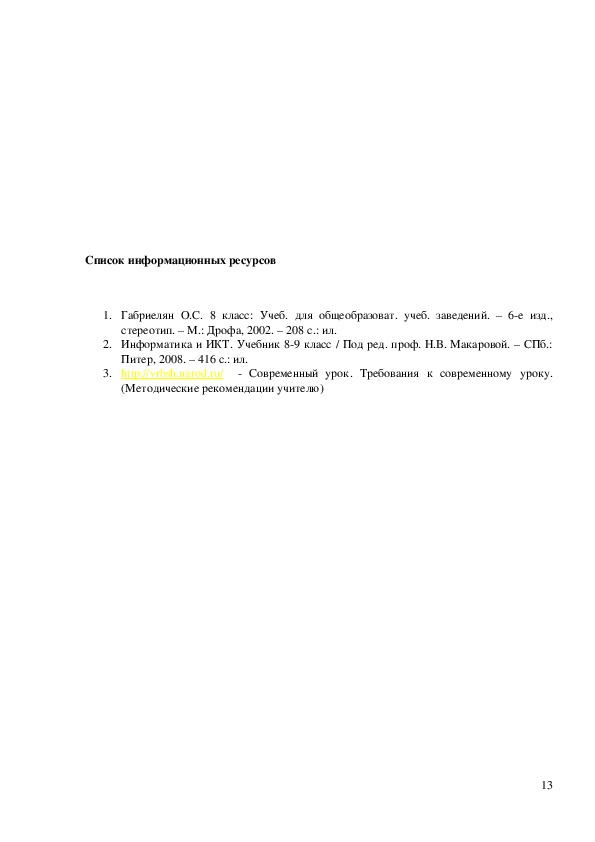 2. Информатика и ИКТ. Учебник 89 класс / Под ред. проф. Н.В. Макаровой. – СПб.: