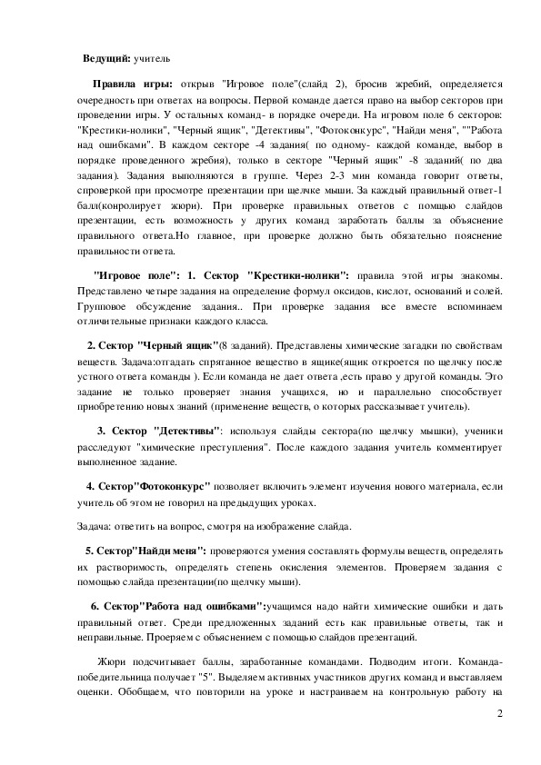 Обобщающий урок-игра "Мир веществ" 8 класс