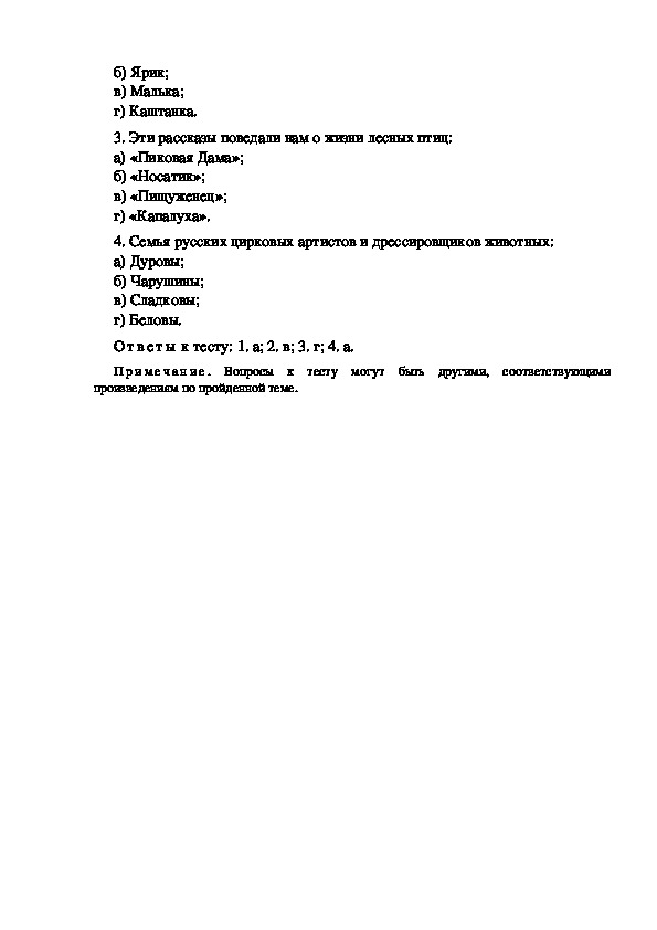 О т в е т ы к тесту: 1. а; 2. в; 3. г; 4. а.