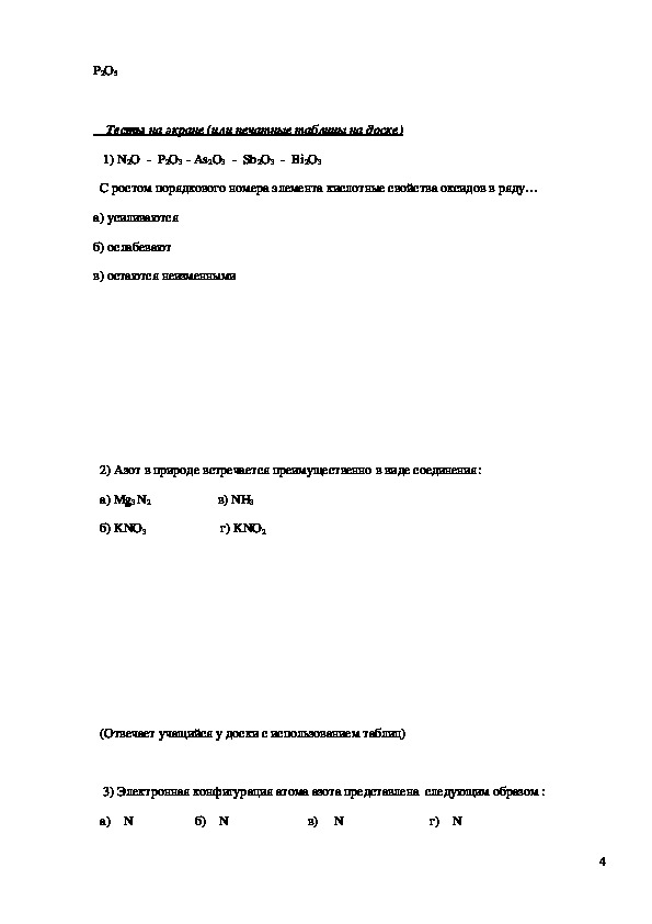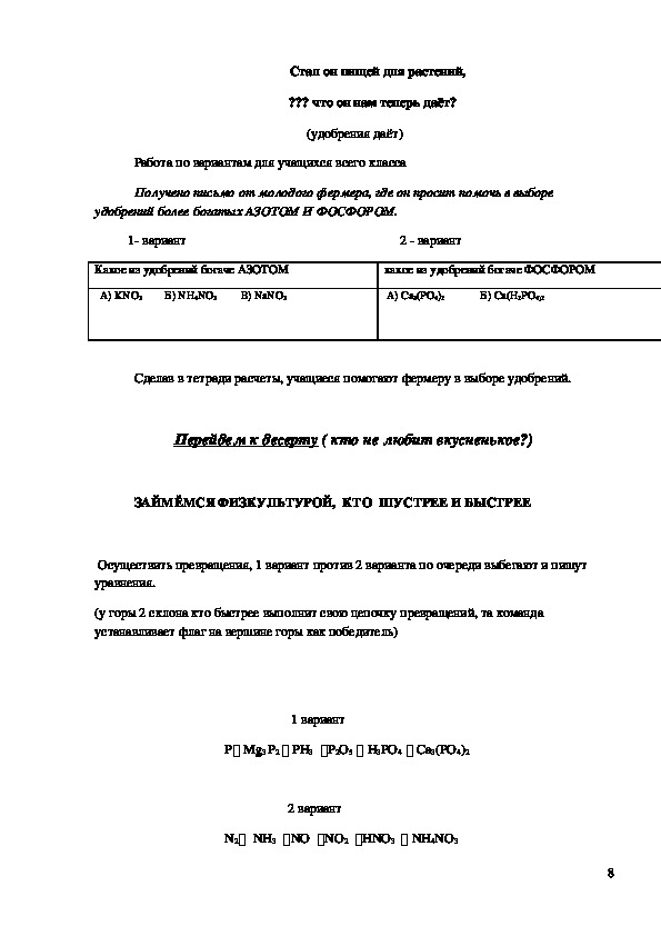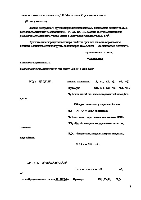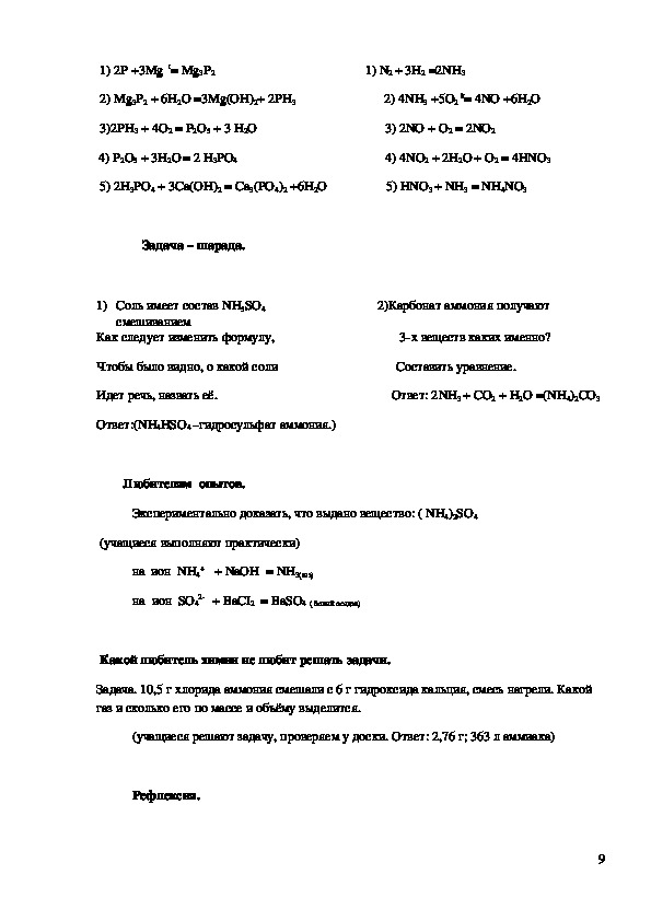 9 классОбобщающий урок "Подгруппа азота" 9 класс