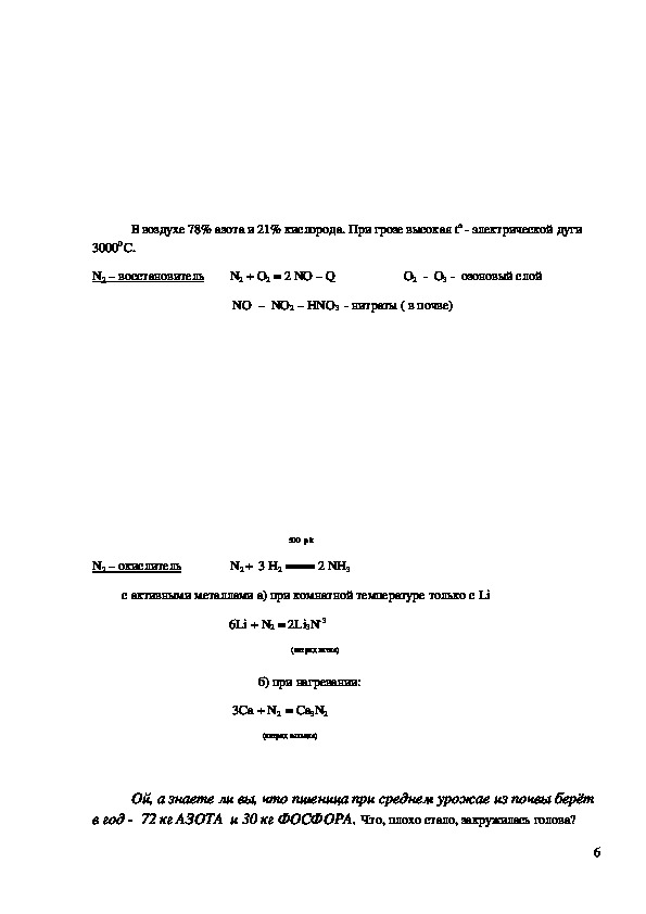 5В воздухе 78% азота и 21% кислорода. При грозе высокая to электрической дуги