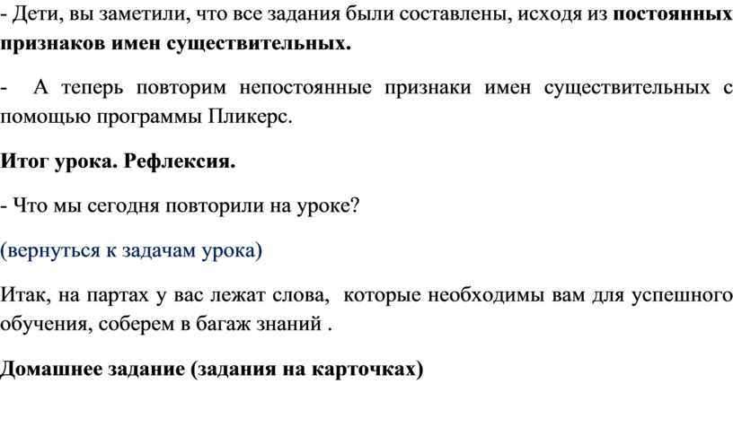 - Дети, вы заметили, что все задания были составлены, исходя из постоянных признаков имен существительных.