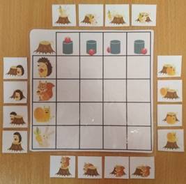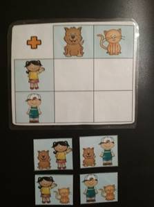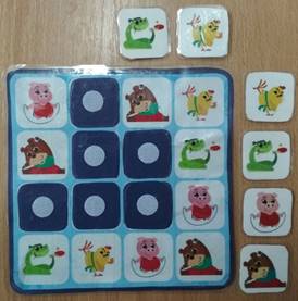 Предполагается совмещение картинок – фигурок по вертикали и горизонтали, чтобы определить, «кто с кем дружит». В итоге – в каждой клетке поля должны находиться 2 предметные картинки.