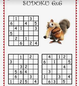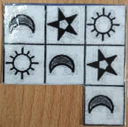 Правила: заполнить пустые клетки нужными картинками так, чтобы в каждой строке, и в каждом столбце картинка встречалась только один раз.