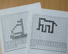 Очень понравились моим ребятам задания следующего уровня: «Закрась клетку с указанным «адресом». Какая фигура у тебя получилась?»