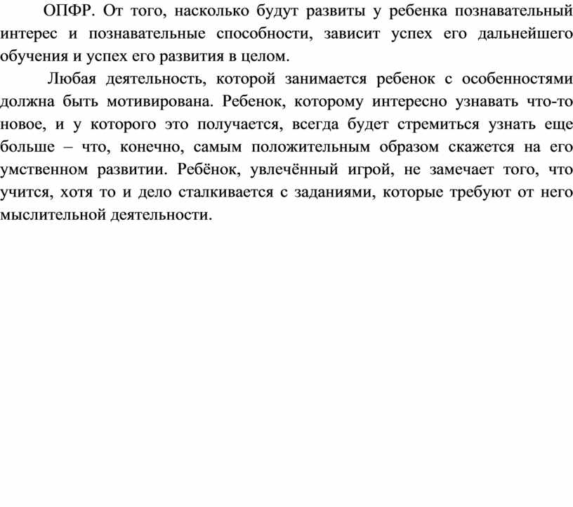 Для детей с ОПФР характерны недостаточность, ограниченность, фрагментарность знаний об окружающем мире, что сказывается на развитии познавательных процессов: внимания, восприятия, памяти, мышления. Особенностями мыслительной деятельности у учащихся ЦКРОиР являются: