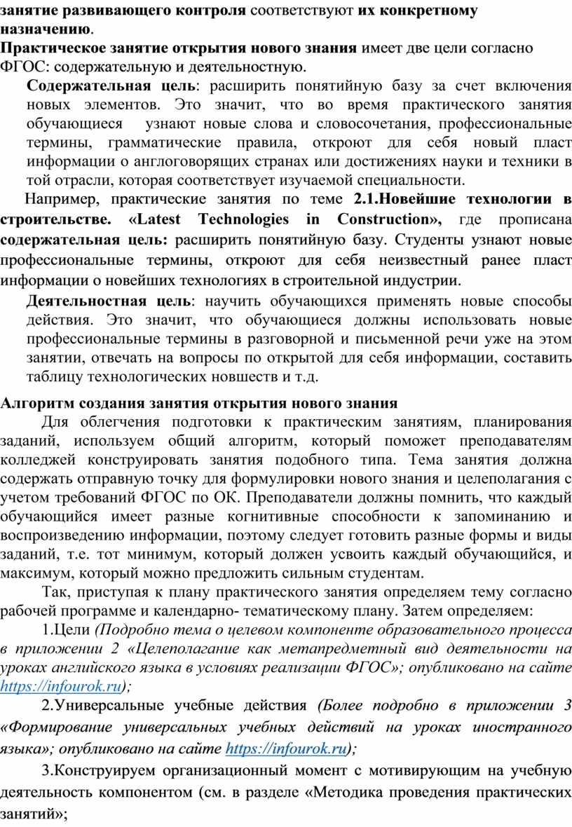О структуре практического занятия этого типа подробнее в приложении 3.