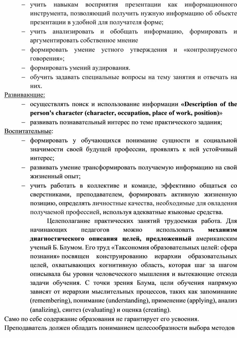 преподавателями в зависимости от типа учебного заведения, профиля специализации и учебного предмета, а также уровня развития обучающихся и подготовленности педагогов.