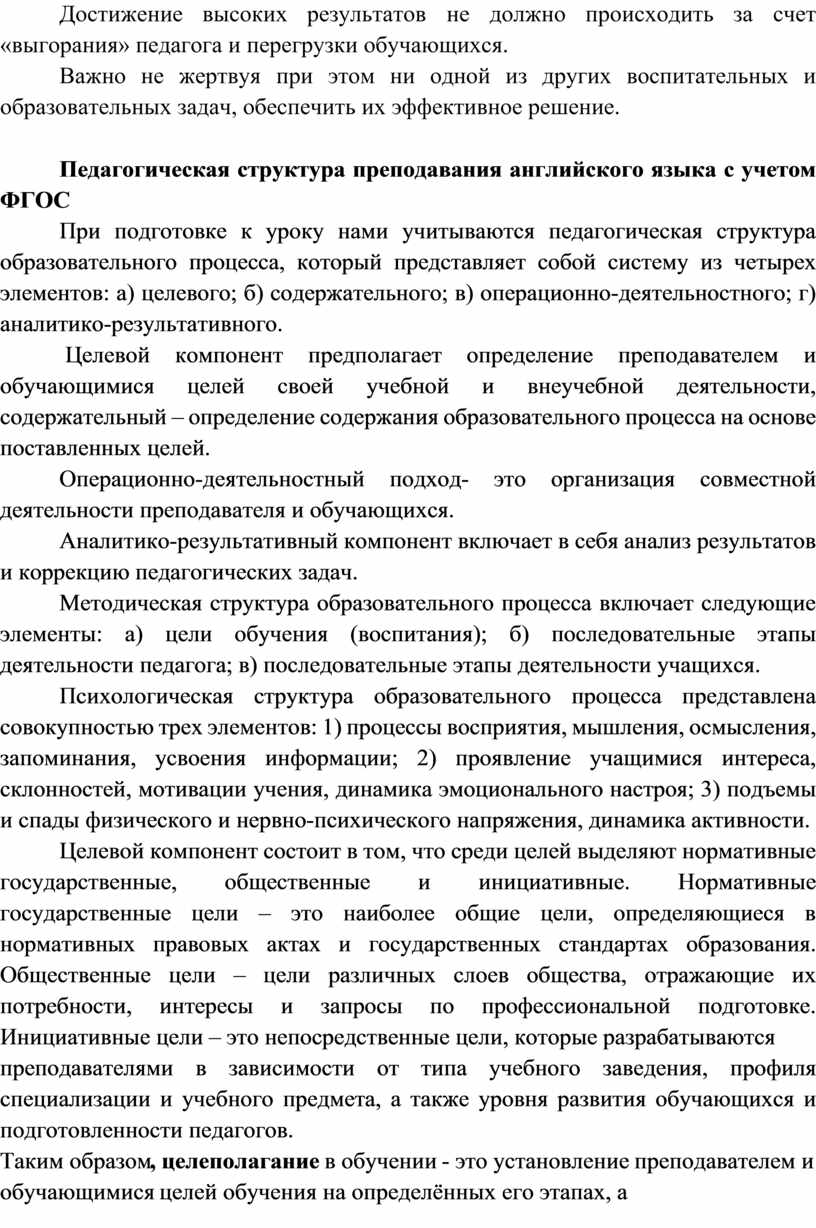 Педагогическая структура преподавания английского языка с учетом ФГОС