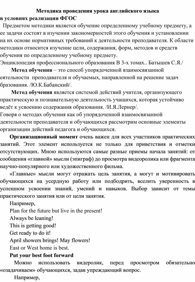 Методика проведения урока английского языка
