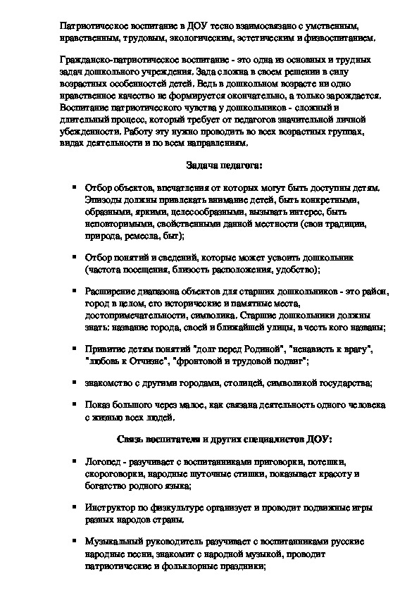 Работа с детьмиПатриотическое воспитание в ДОУ тесно взаимосвязано с умственным,