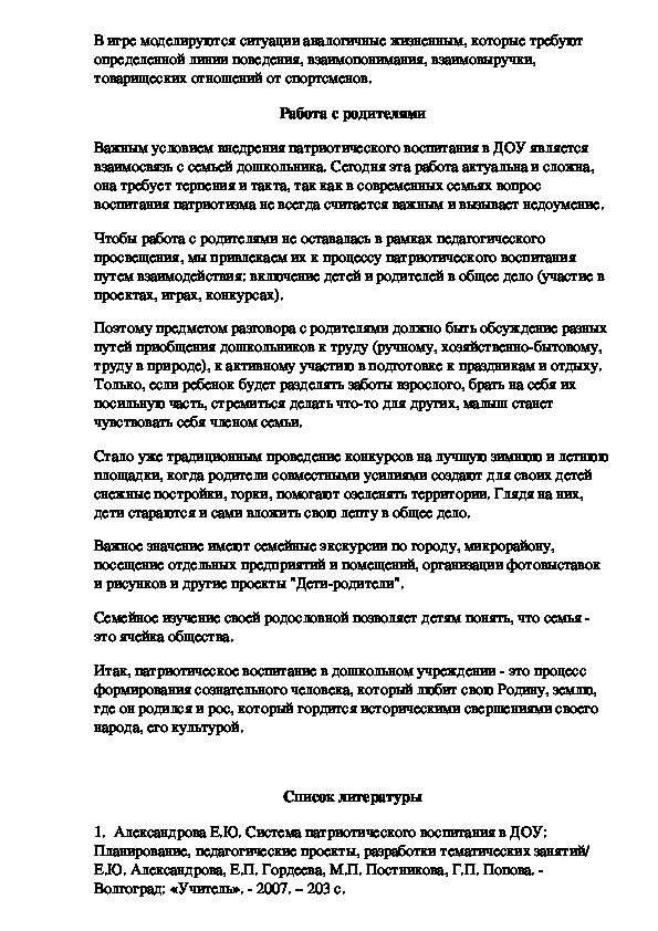 1. Александрова Е.Ю. Система патриотического воспитания в ДОУ: