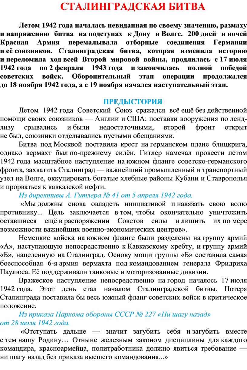 Вражеское наступление непосредственно на город началось 17 июля 1942 года. Этот день стал началом Сталинградской битвы. Потеря Сталинграда поставила бы весь южный фланг советских войск в критическое положение.