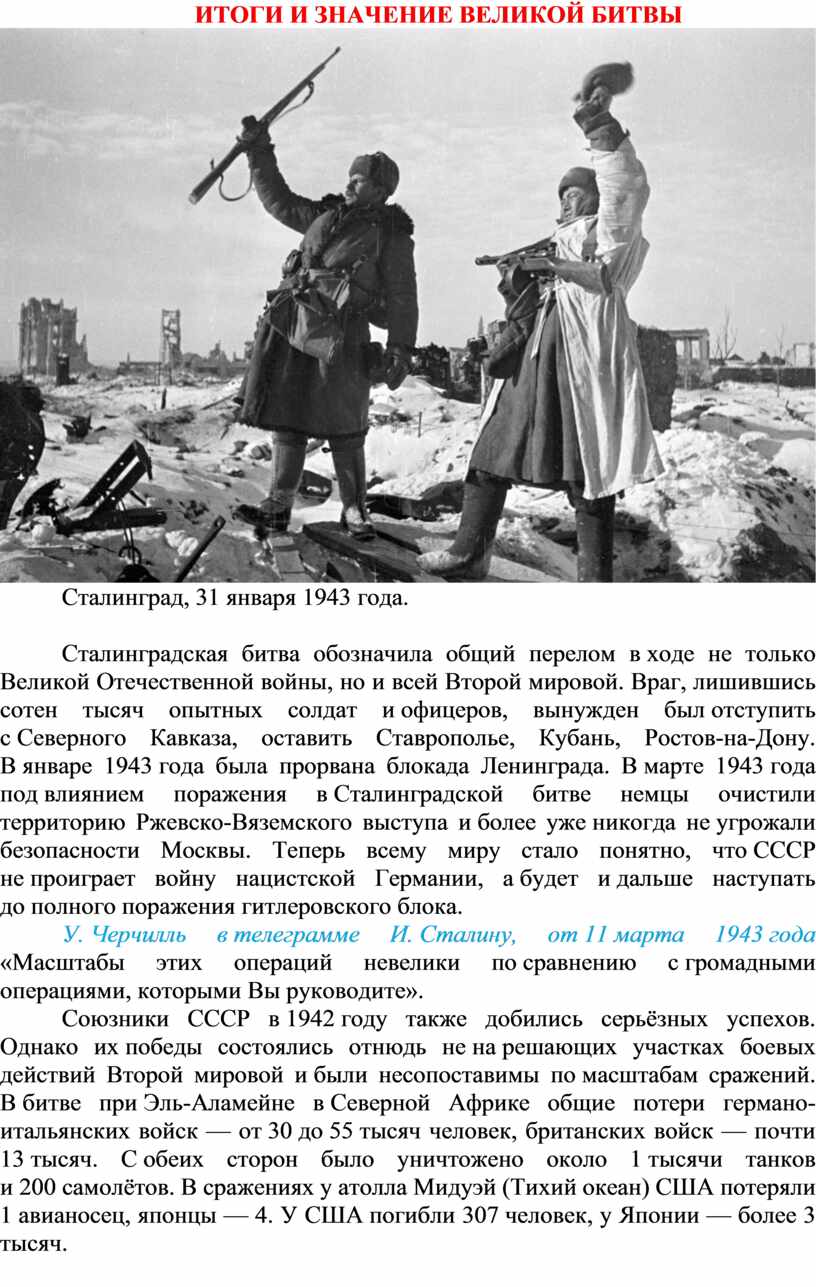 ИТОГИ И ЗНАЧЕНИЕ ВЕЛИКОЙ БИТВЫ