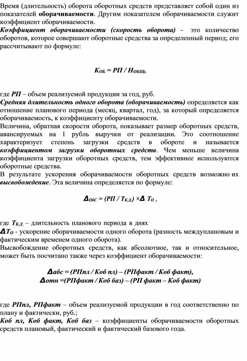 Время (длительность) оборота оборотных средств представляет собой один из показателей оборачиваемости. Другим показателем оборачиваемости служит коэффициент оборачиваемости.