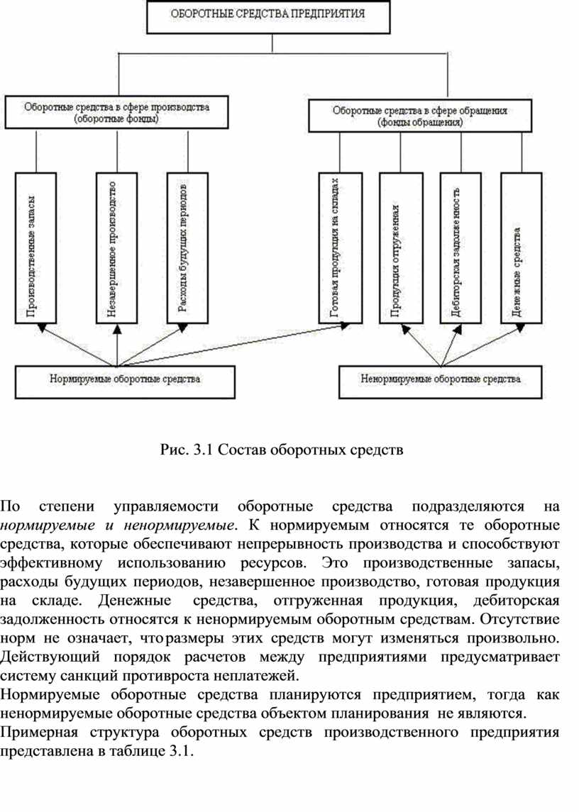 По степени управляемости оборотные средства подразделяются на нормируемые и ненормируемые. К нормируемым относятся те оборотные средства, которые обеспечивают непрерывность производства и способствуют эффективному использованию ресурсов. Это производственные запасы, расходы будущих периодов, незавершенное производство, готовая продукция на складе. Денежные средства, отгруженная продукция, дебиторская задолженность относятся к ненормируемым оборотным средствам. Отсутствие норм не означает, что размеры этих средств могут изменяться произвольно. Действующий порядок расчетов между предприятиями предусматривает систему санкций против роста неплатежей.