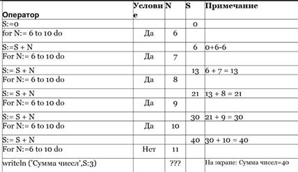Пример: Вычисление суммы чисел от 6 до 10 int S=0; for (int I=6; i<11; i++)