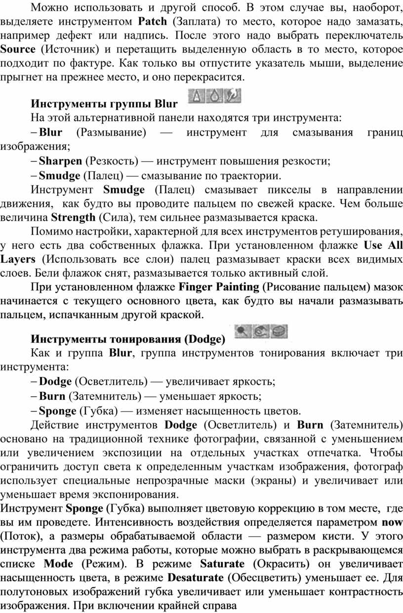 Инструменты ретуширования: