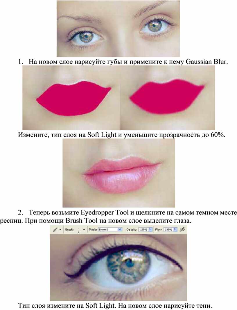 13. На новом слое нарисуйте губы и примените к нему Gaussian Blur.