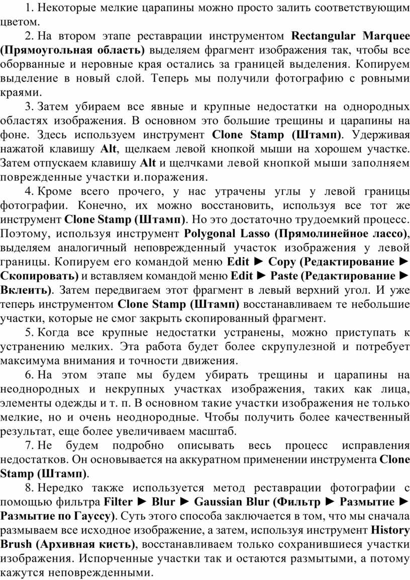 3. Ретушь технического брака Штампом (устранение на фотографии царапин и трещин)